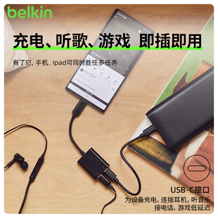 Belkin贝尔金USB C耳机音频转换器转接头 C转3.5充电2合1手机Type