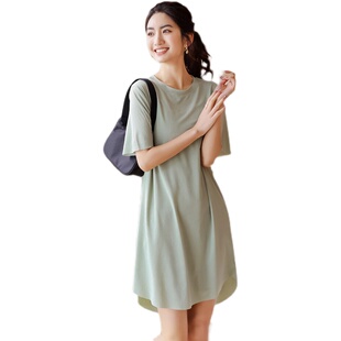 女打底裙纯色圆领家居睡裙大码 宽松中长裙冰丝连衣裙短袖 薄款 夏季