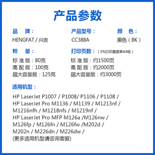 m1139mfp M202n m128fp m126a m1218nfs m1213nf P1106 兴发适用惠普m1136硒鼓cc388a打印机P1007