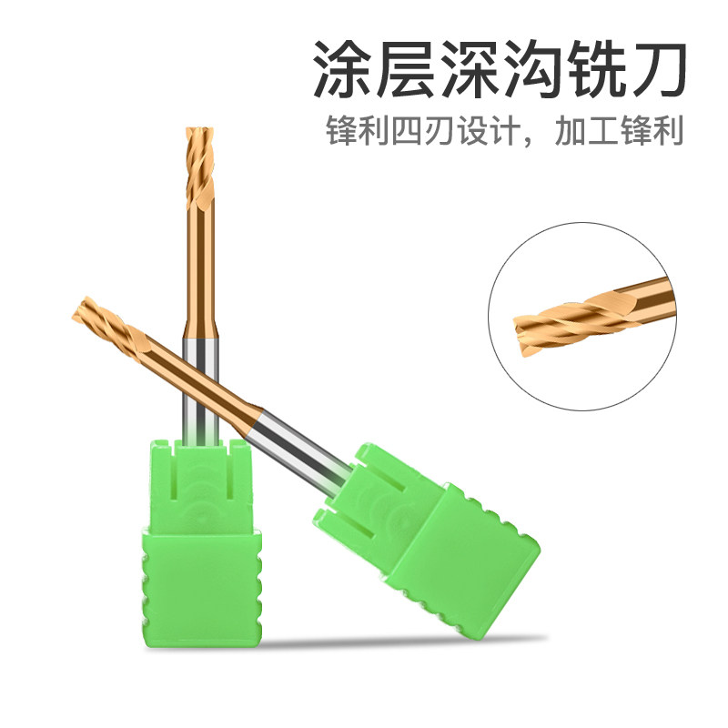 硬质合金4刃深沟刀涂层钨钢长颈小径平底立铣刀数控65度钢用避空