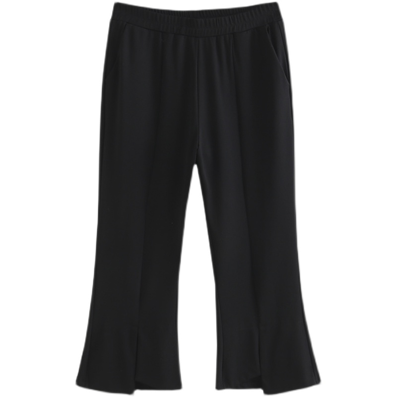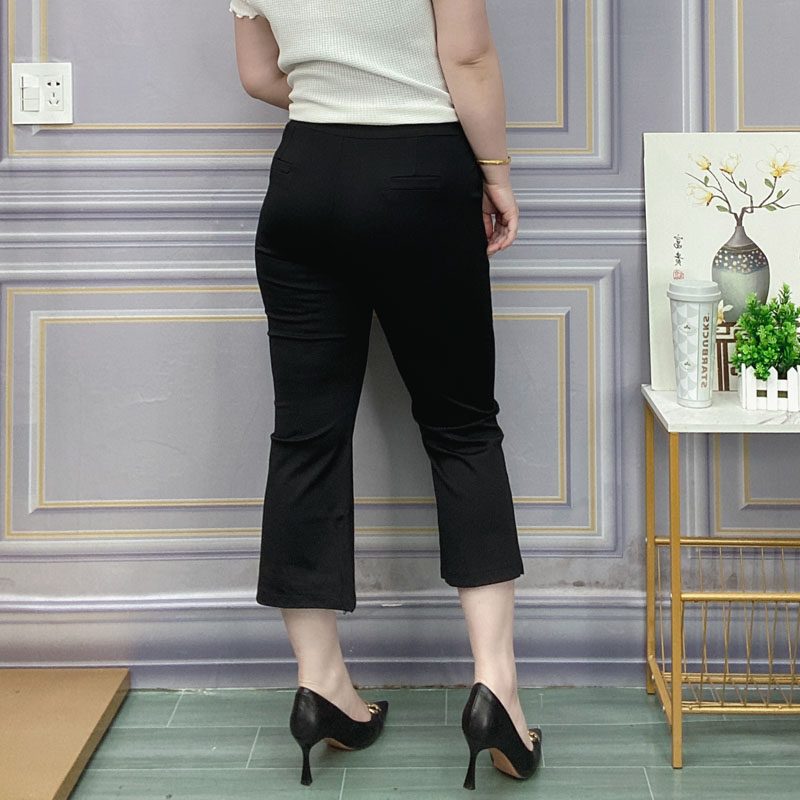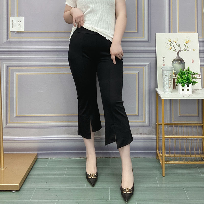宽松弹力显瘦哈伦裤 薄款 大码 胖mm微喇叭开叉中裤 七分裤 女裤 女夏季
