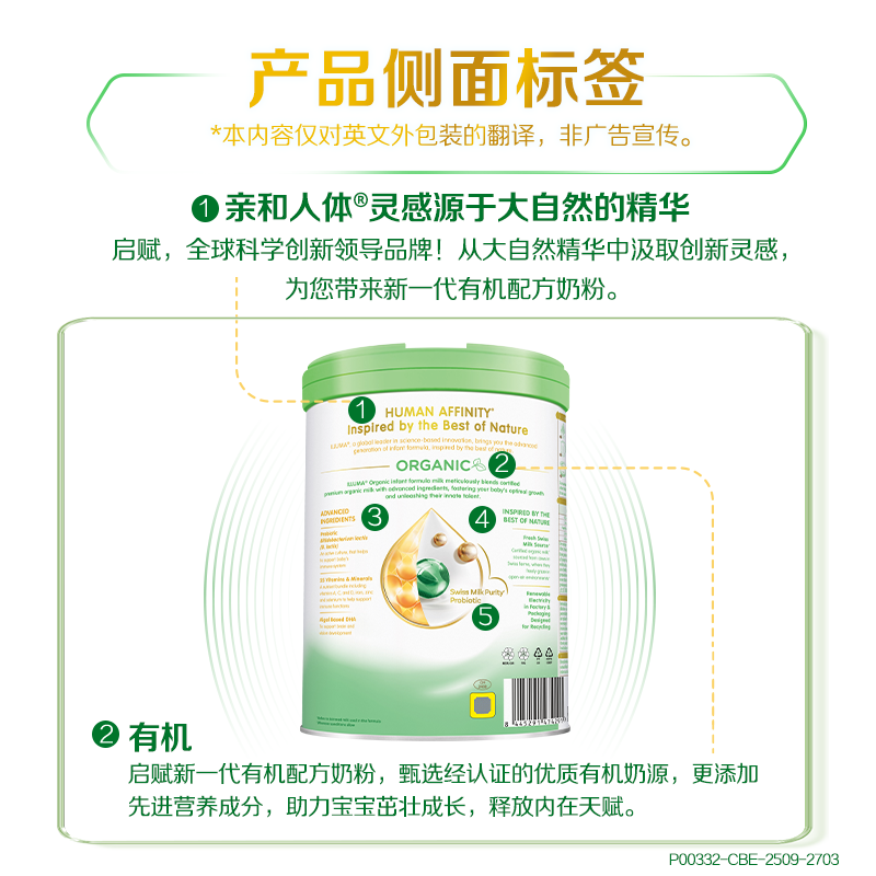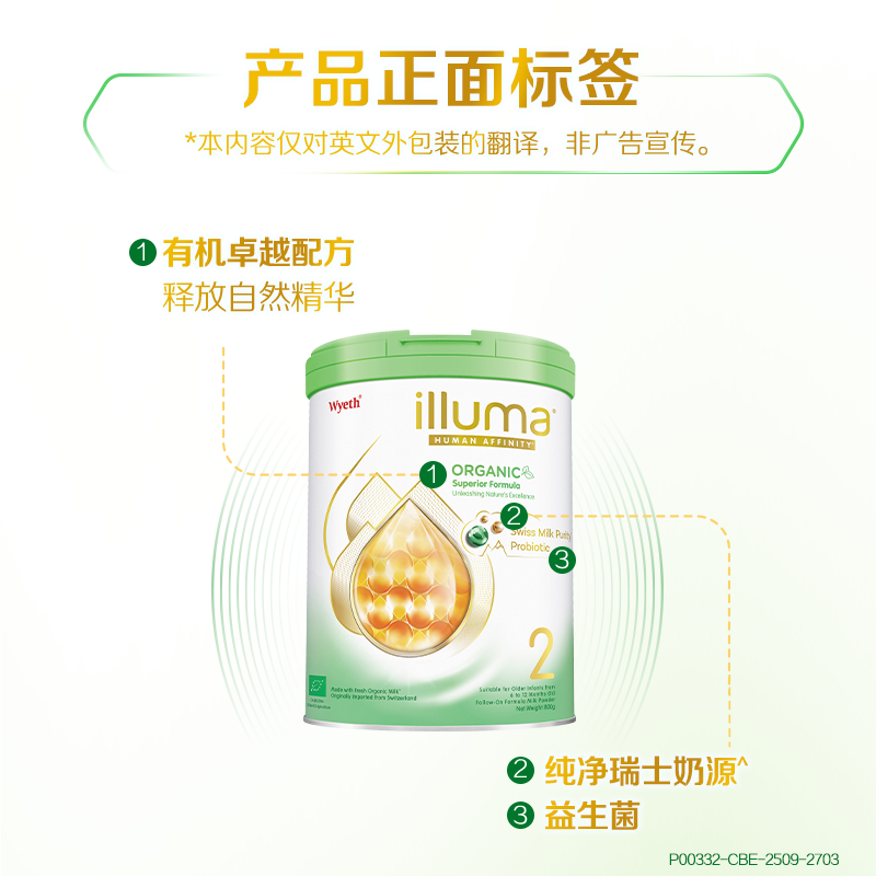 12个月婴儿奶粉800g瑞士原装 惠氏启赋有机2段6 进口 6罐