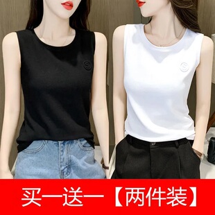 宽松百搭无袖 吊带背心女夏季 刺绣白色大码 韩版 打底外穿t恤女 新款