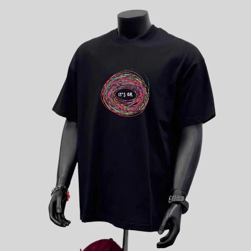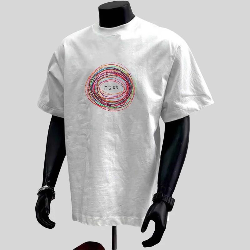 高级感宽松百搭上衣ins领带夹 t恤男新款 美式 潮牌高街印花纯棉短袖