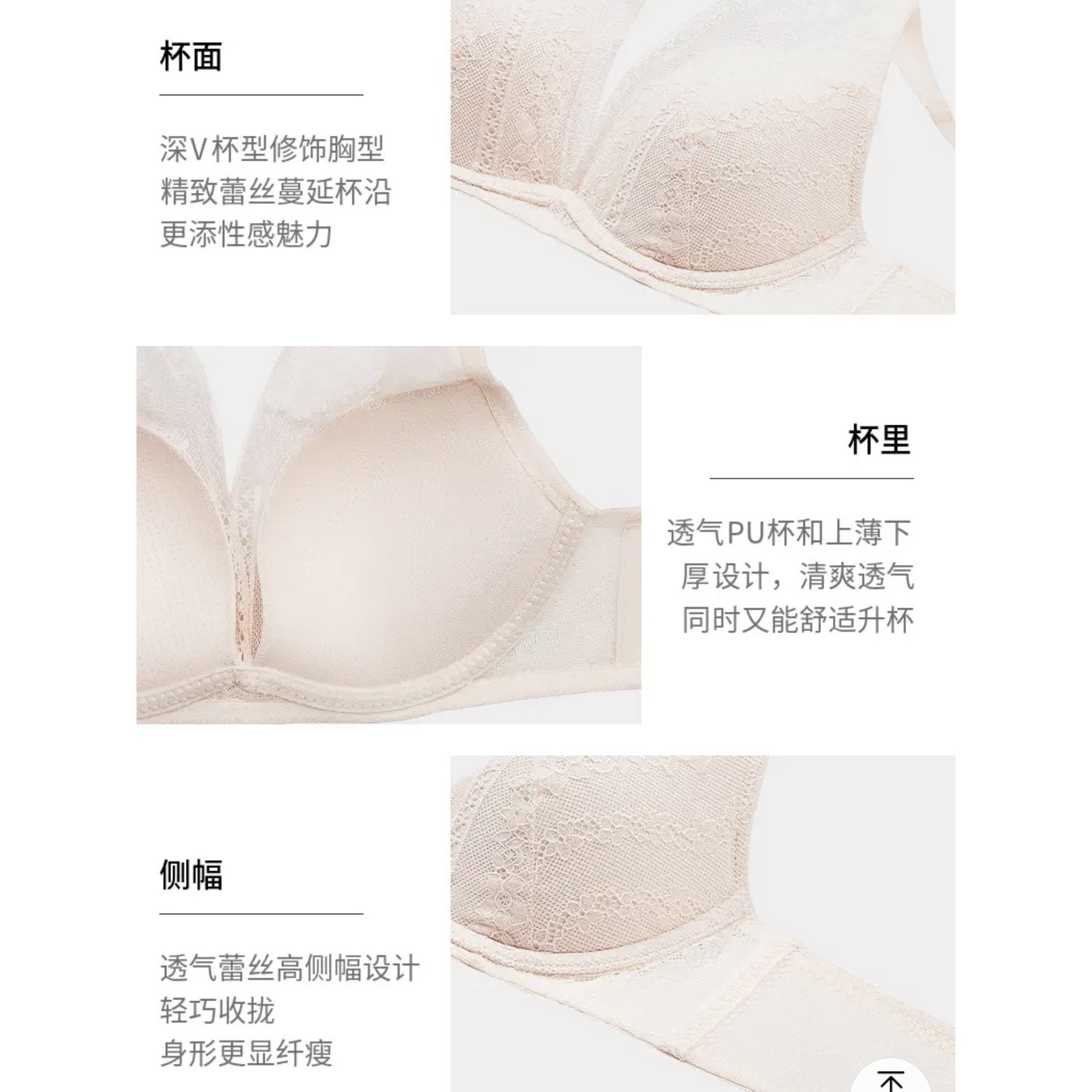 小胸上薄下厚聚拢显大水盈杯软钢圈深V罩杯文胸 8890 黛