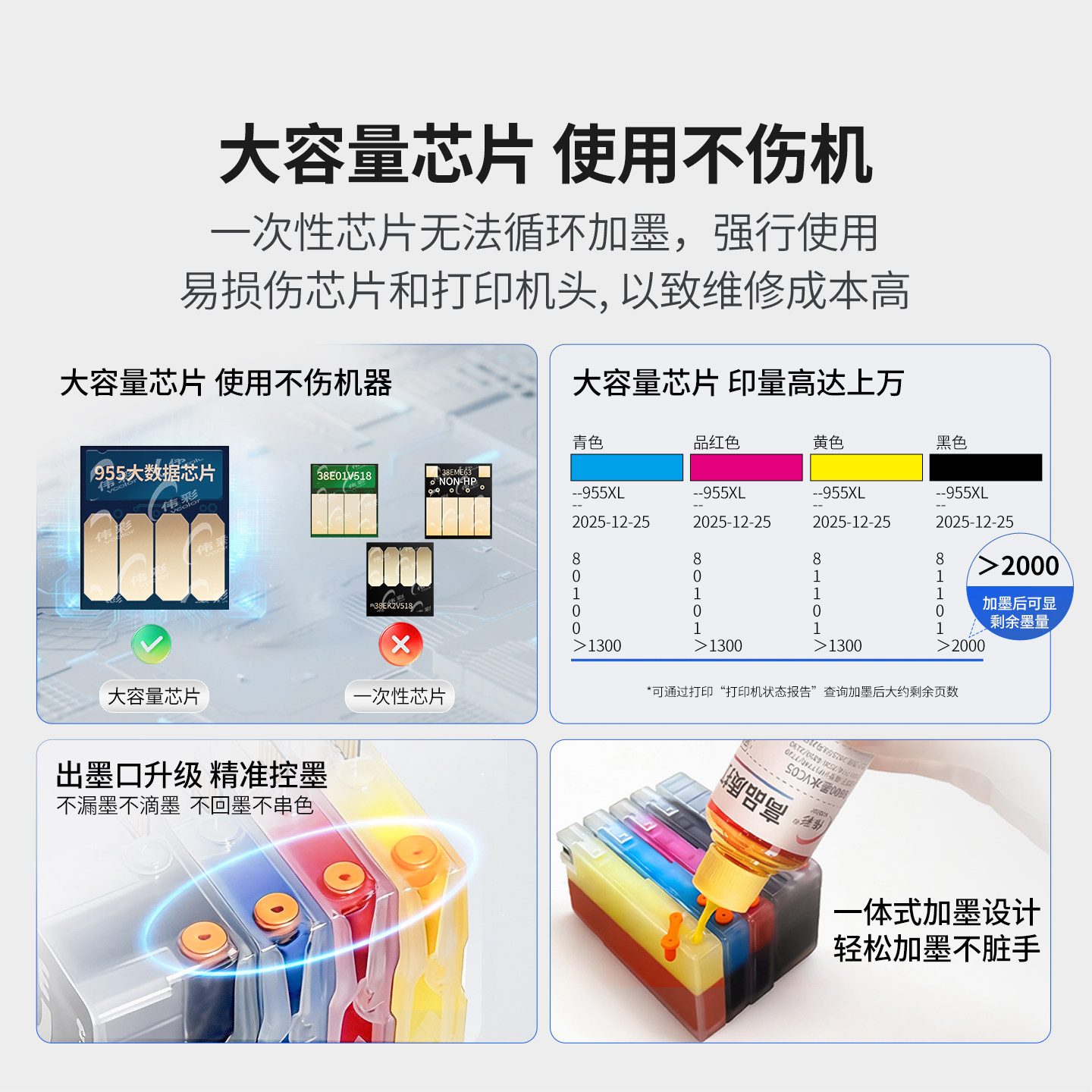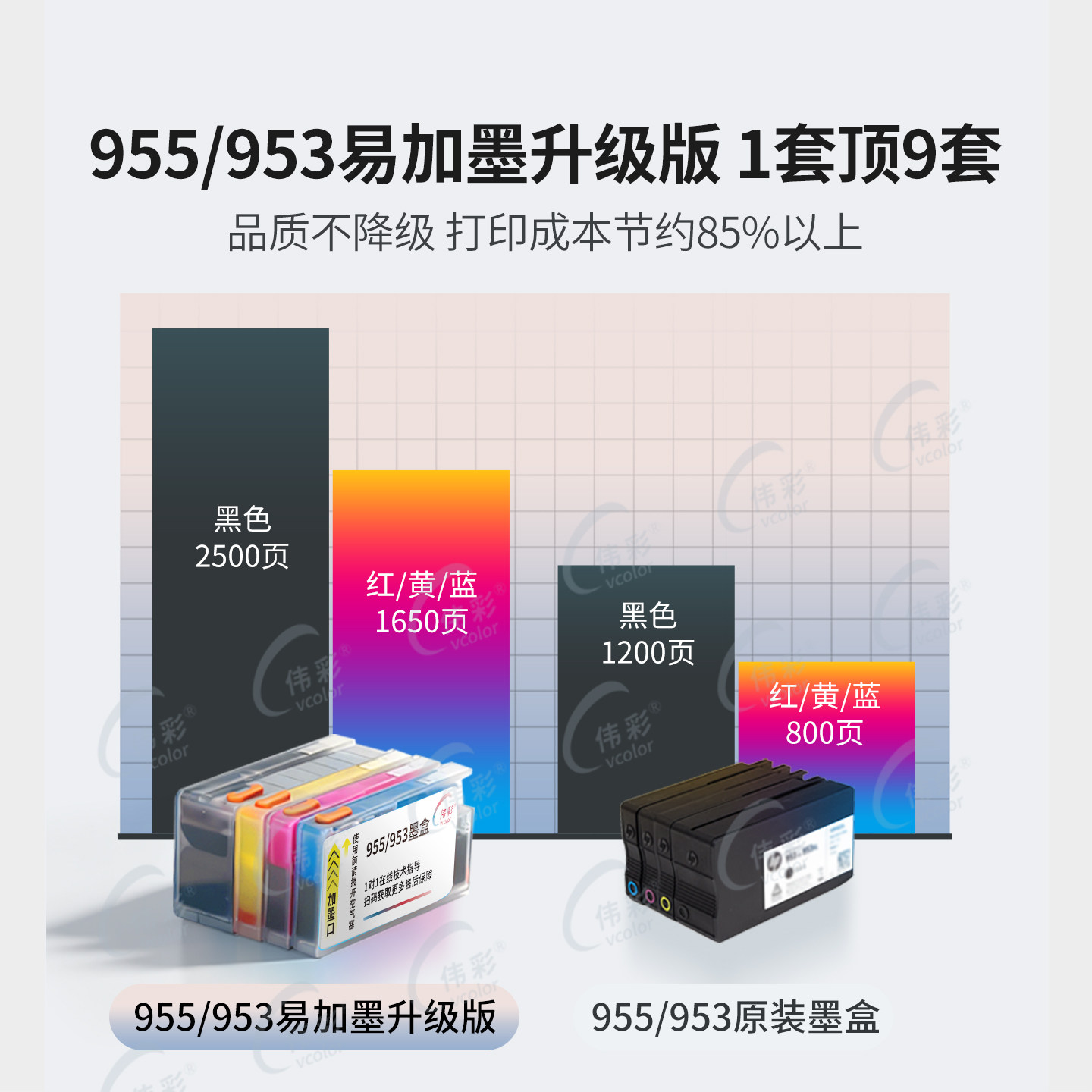8720 8710彩色墨水Pro8210 8740 伟彩适用惠普955墨盒7730 8216 7720 8730 hp953XL打印机连供墨水匣 7740