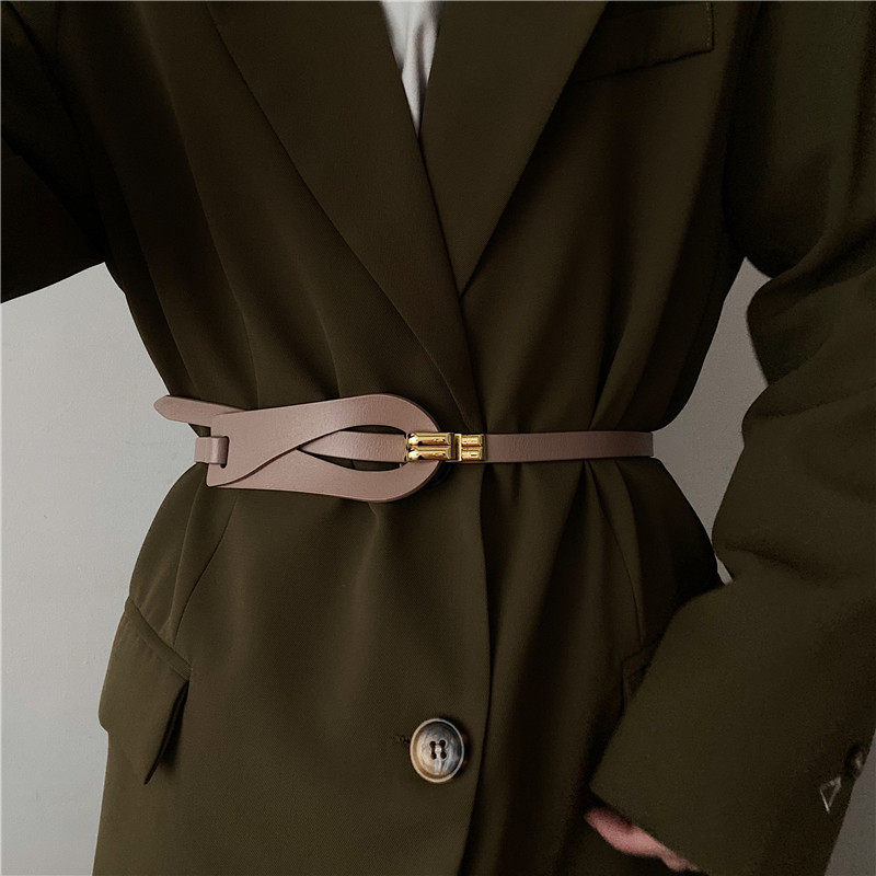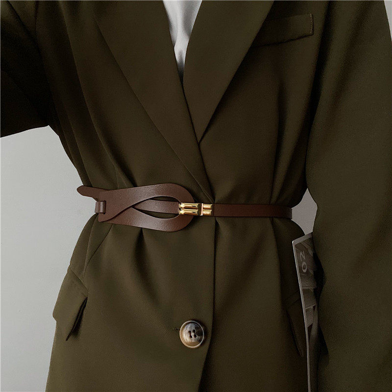 设计高级感腰带女真o皮百搭配西装 连衣裙外套裙子毛衣腰封束腰皮