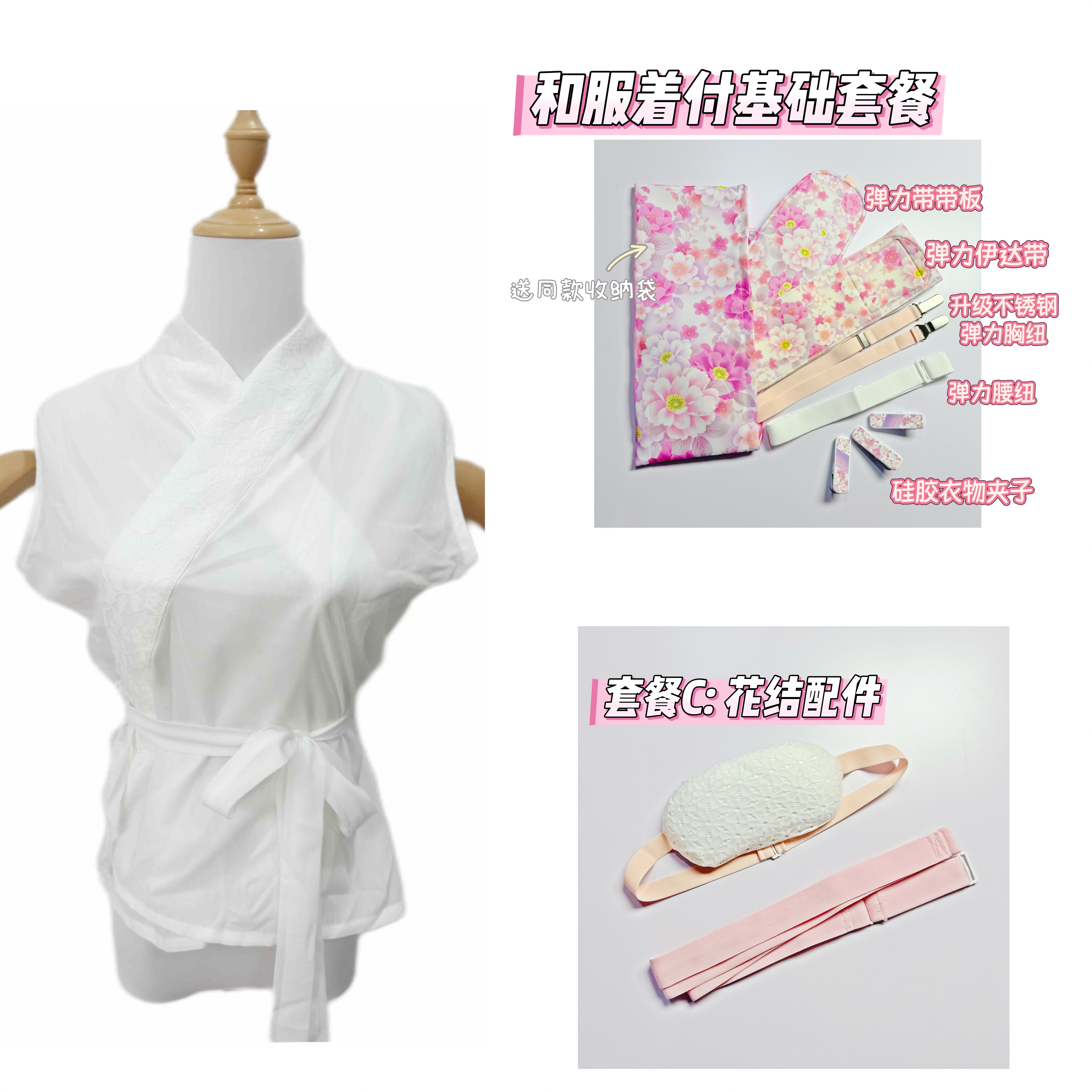 日本和服传统配件着付工具和装 小物领心伊达带三重纽胸纽绑绳带板