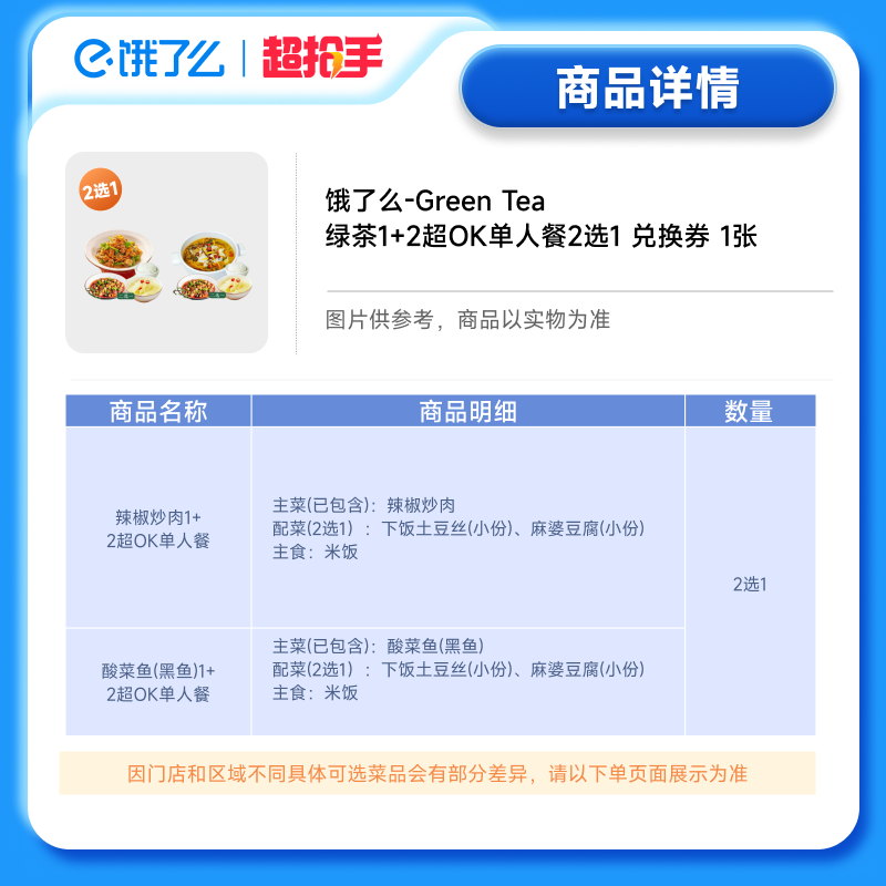 绿茶超OK单人套餐2选1饿了么外卖套餐非代下单 饿了么外卖券