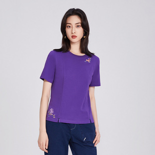 夏季 t恤女2025新款 纯棉全棉简约绣花上衣FGHB2037 短袖 FISHING女装