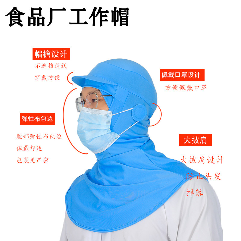 防尘食品厂全弹力披肩帽女可带眼镜防护透气吸汗口罩车间男卫生帽