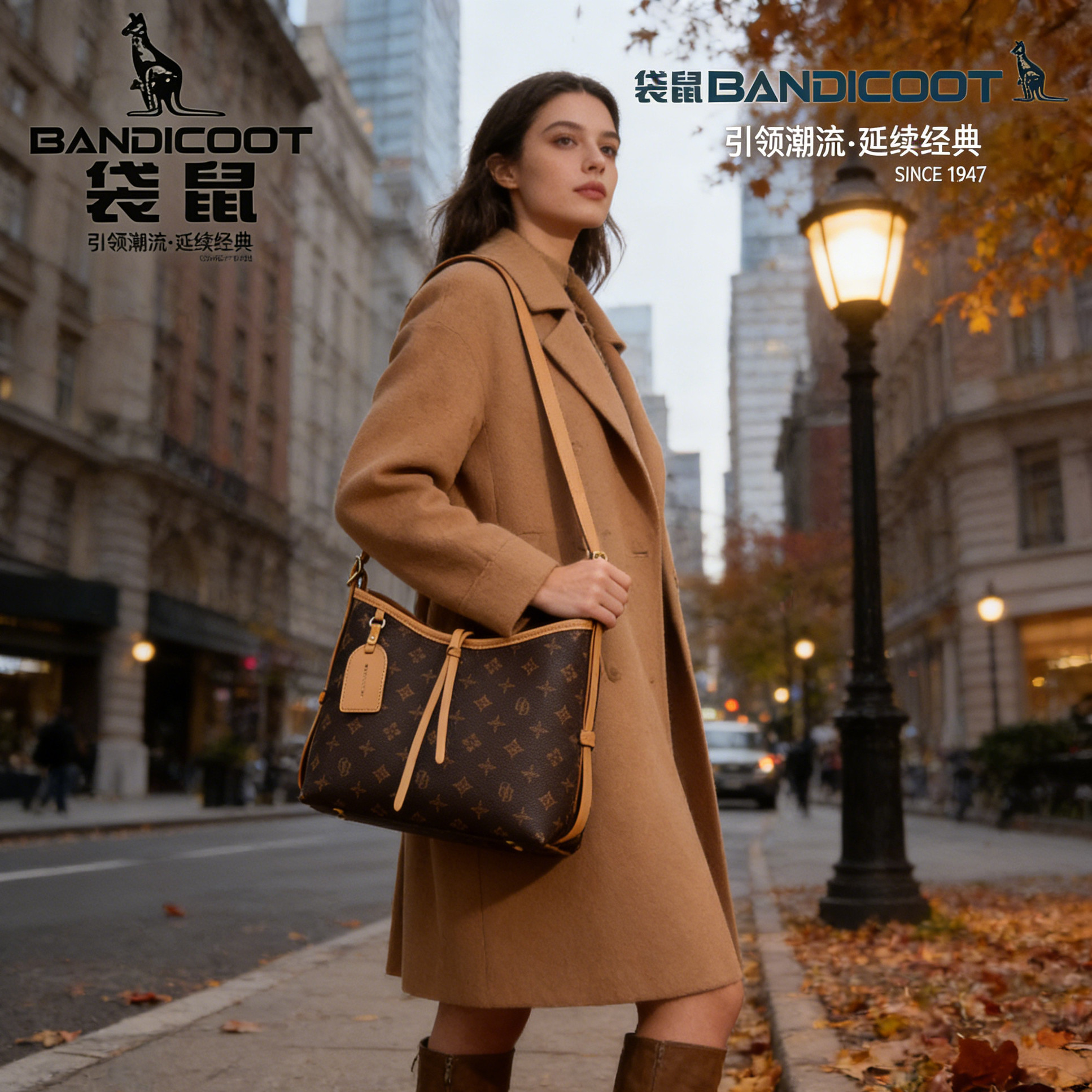 袋鼠女包单肩斜挎包2025新款 休闲百搭女腋下包托特包大容量印花包