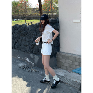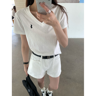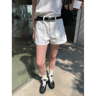 Luu 宽松休闲直筒阔腿裤 高级感白色牛仔短裤 2025新款 女夏季 Halo
