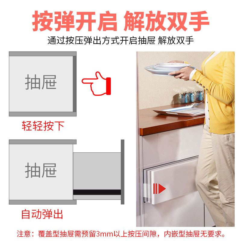 加厚抽屉滑轨不锈钢静音三节轨橱柜阻尼缓冲导轨衣柜滑道反弹轨道