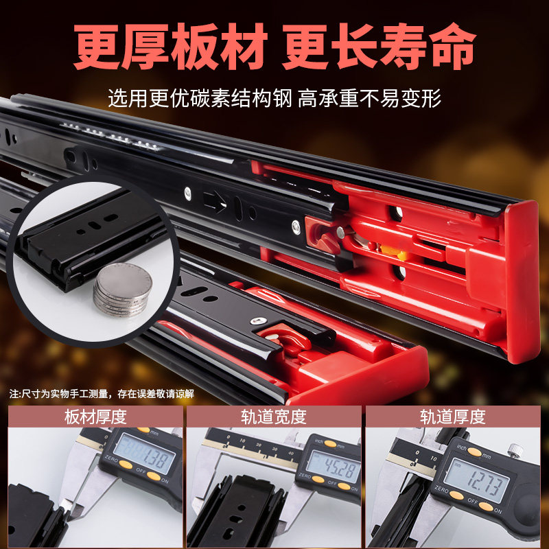 抽屉滑道轨道超厚静音三节轨导轨衣柜滑轨阻尼缓冲45加宽黑滑轨道