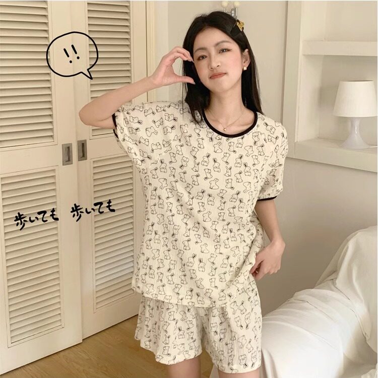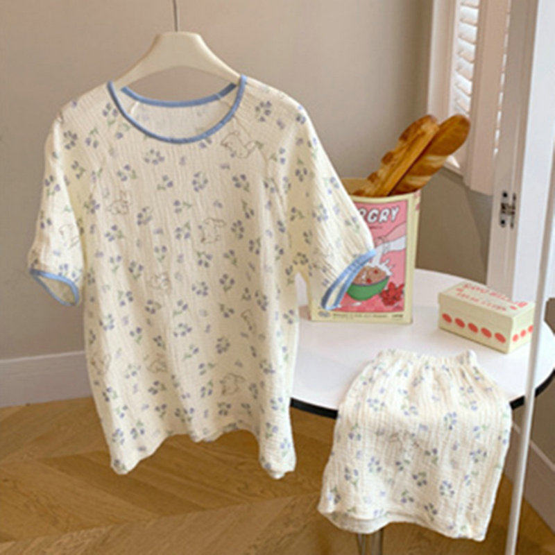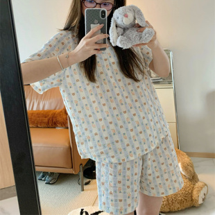 可爱学生少女短袖 绉布韩版 家居服两件套 薄款 可盐可甜女生睡衣夏款