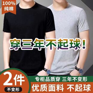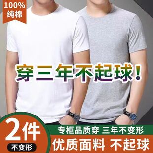 男士 100%纯棉纯白t恤 短袖 纯色体恤圆领大码 打底衫 半袖 两件装