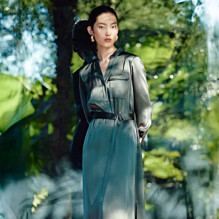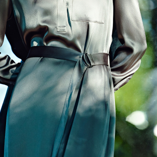 IMM尹默春三醋酸气质休闲缎面收腰长款 连衣裙女 衬衫