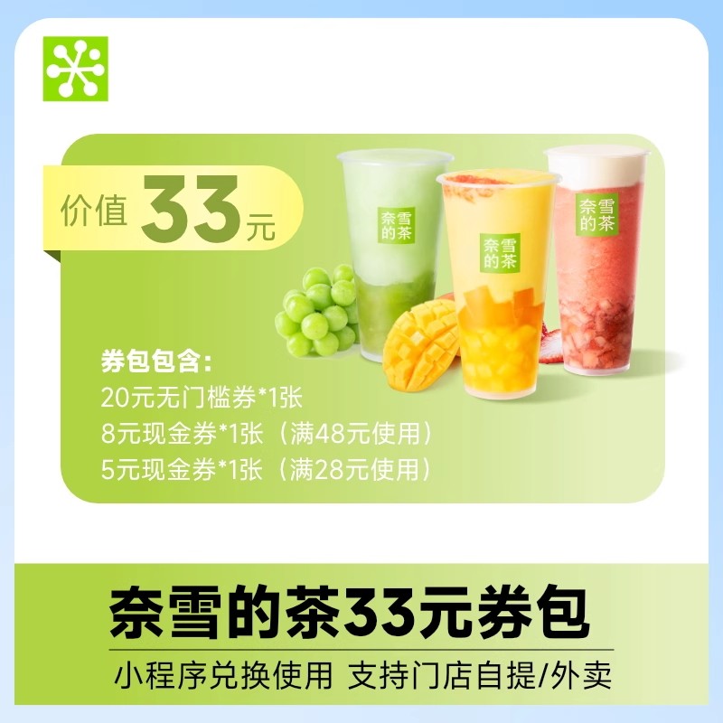 茶16选1代金券 奈雪 奶茶果茶兑换券优惠券 下拉详情领补贴