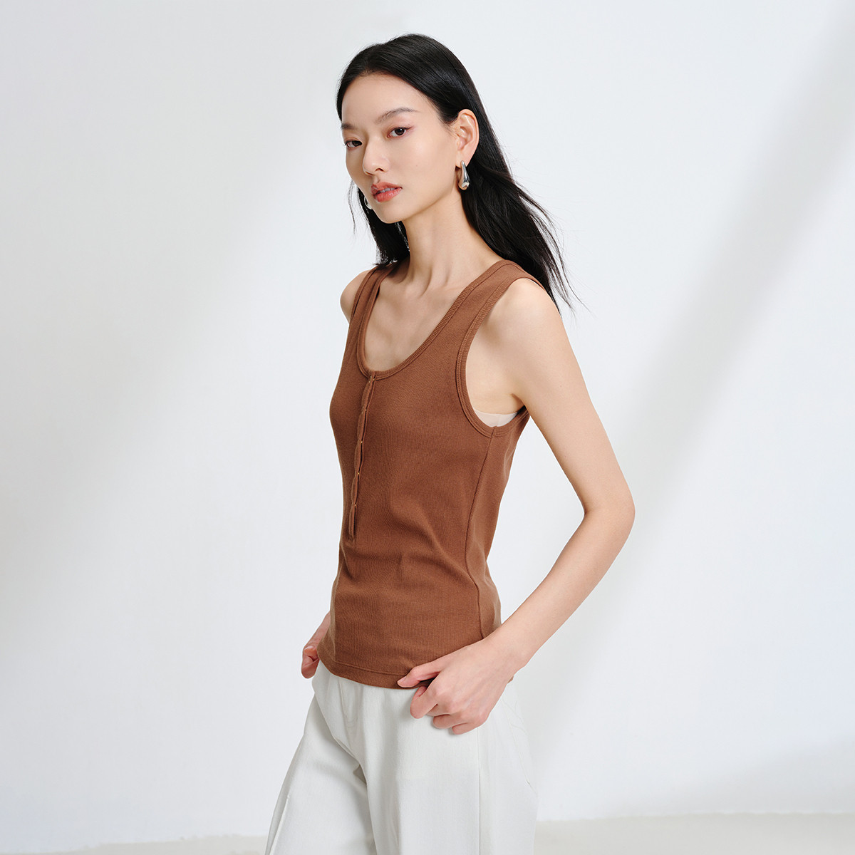 ubras美背圆领内搭打底女士无袖 背心白色吊带上衣带胸垫可外穿