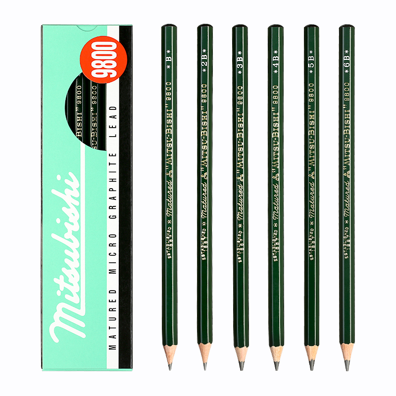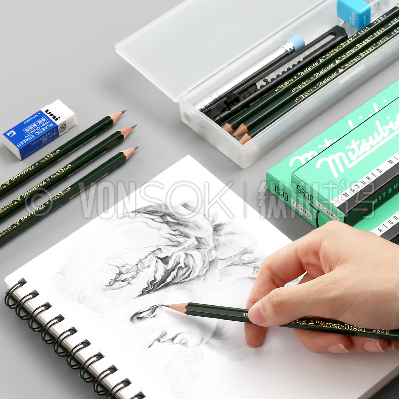 纵向书写 日本Uni三菱绘图素描铅笔9800小学生美术绘图专用