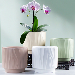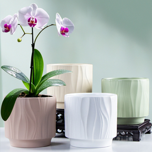 北欧简约花盆陶瓷家用带托蝴蝶兰专用ins风虎皮兰多肉绿植盆清仓