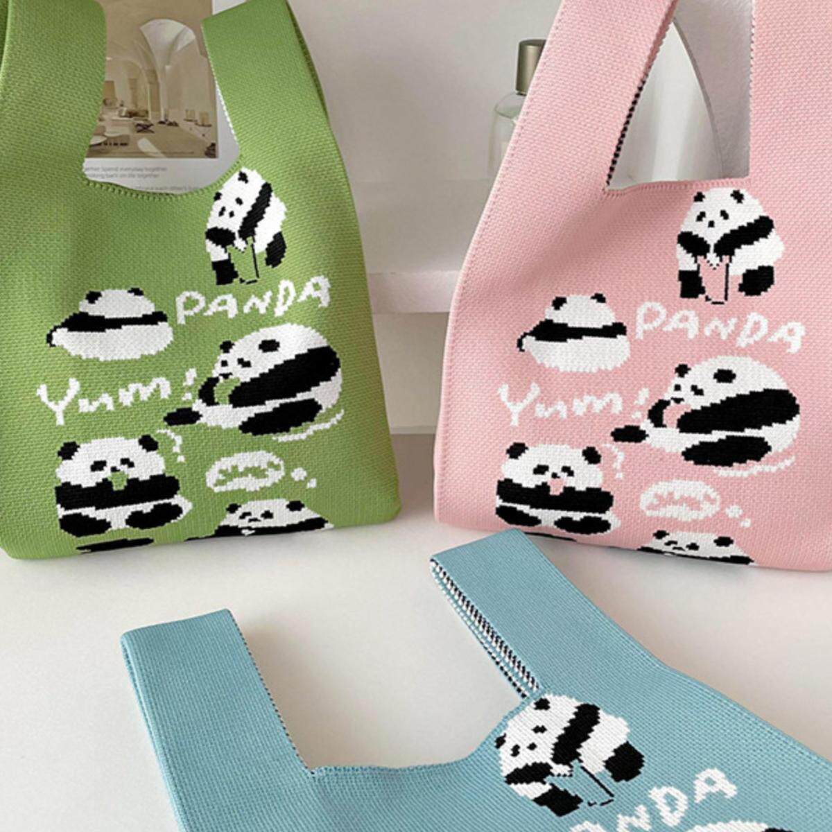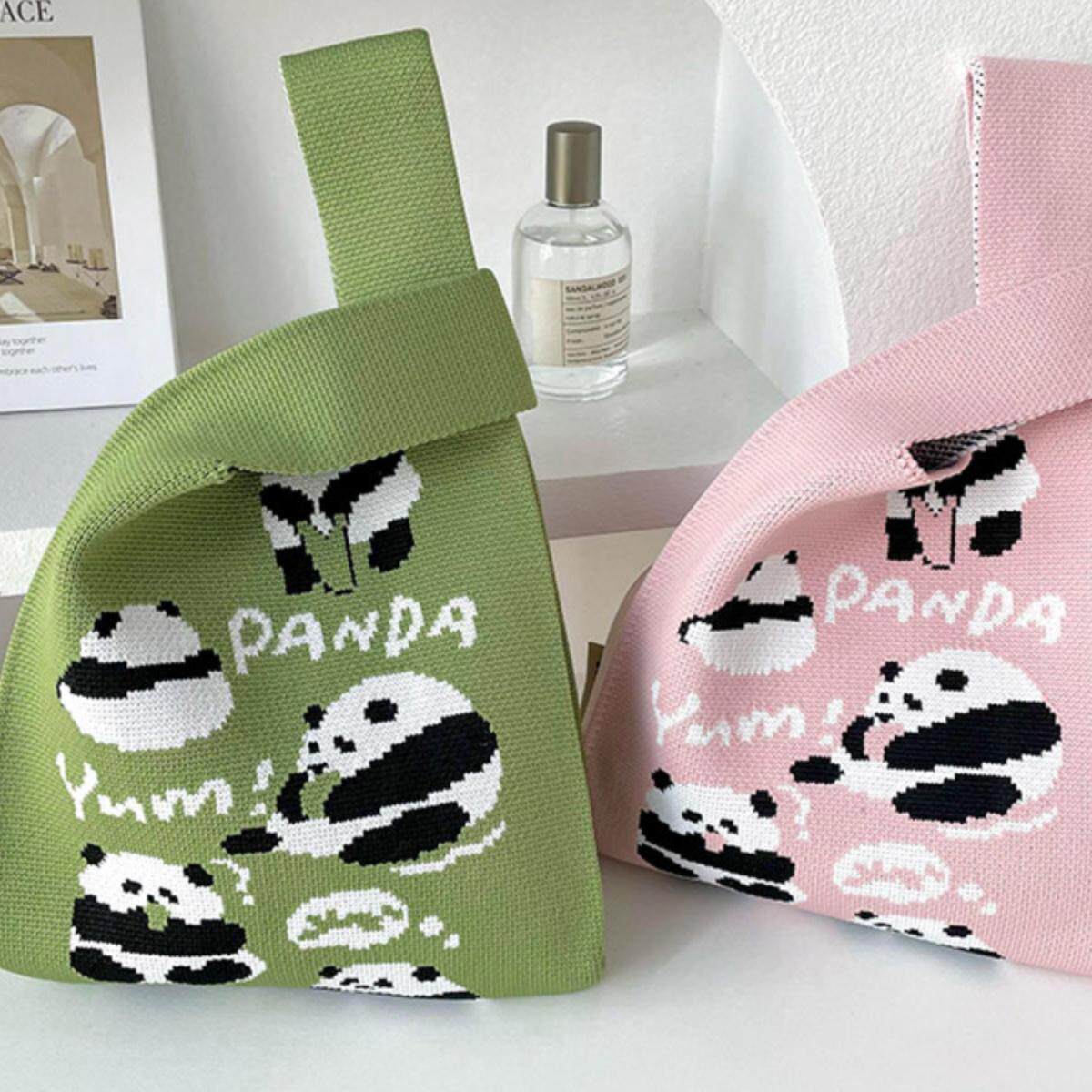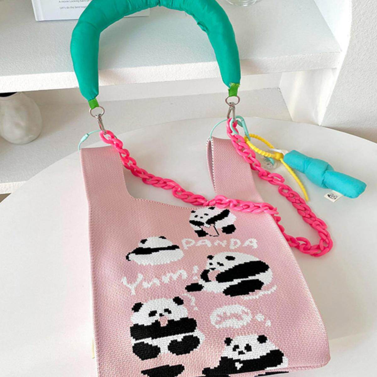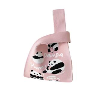 针织手提手拎饭盒包学生可爱熊猫韩版 大容量休闲百搭伴手礼沙滩包