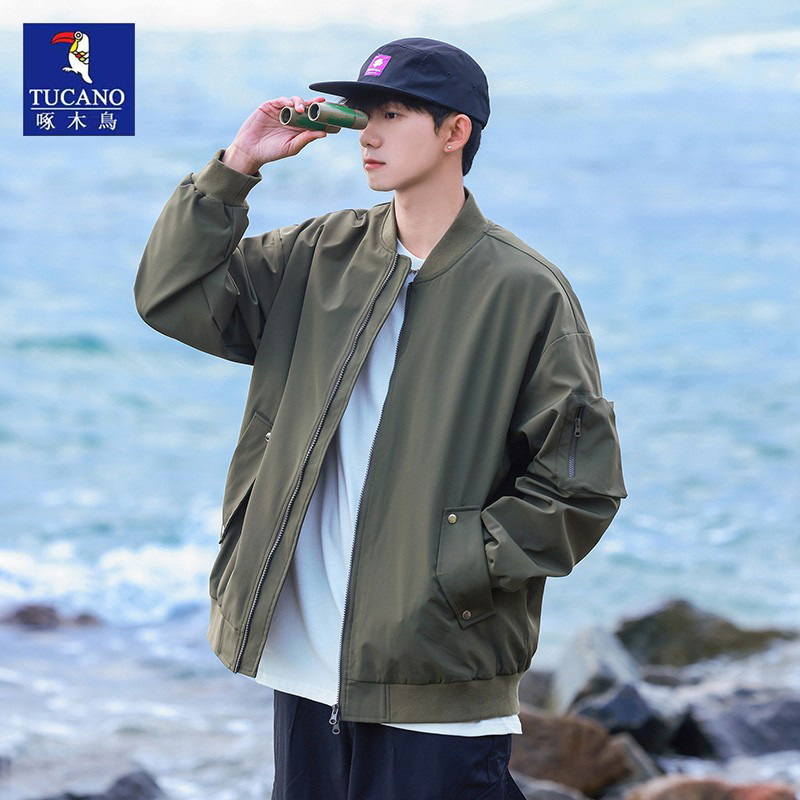 上衣服情侣款 飞行员夹克男黑色工装 宽松休闲外套 美式 啄木鸟春秋季