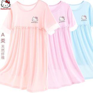 a字裙长裙过膝家居裙 连衣裙大码 莫代尔睡裙女夏拼接薄款 宽松短袖