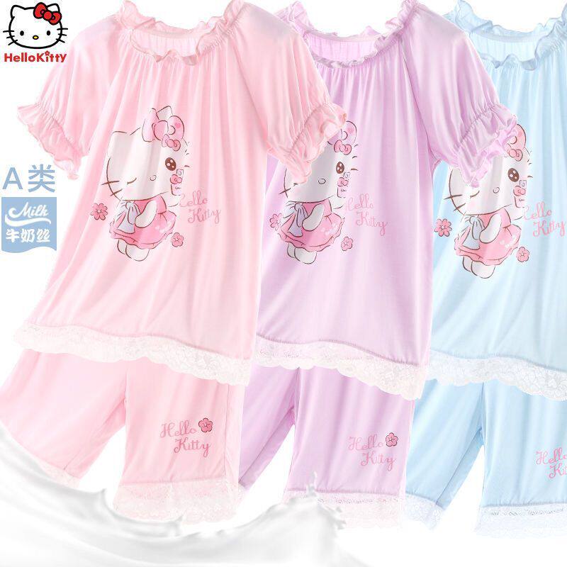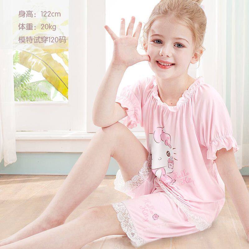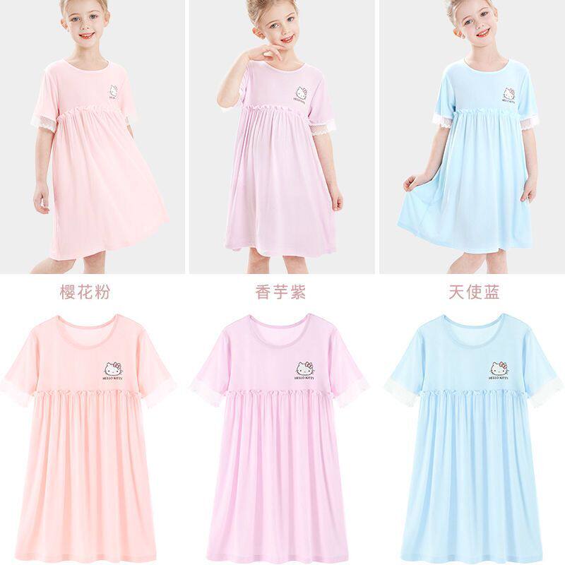 可爱睡衣家居服全棉女款 芬腾睡裙女士夏季 纯棉大码 短袖 连衣裙 薄款