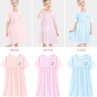 透气水墨画家居服连衣裙 小女孩薄款 久岁伴儿童睡裙女童短袖 夏季