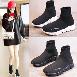 女2024年新款 潮鞋 春季 运动休闲鞋 短靴 透气弹力高帮网红女鞋 袜子鞋