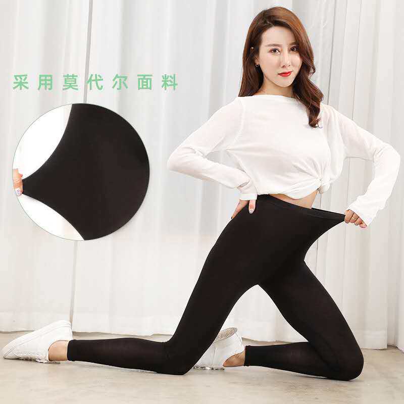 弹力大码 夏秋女外穿打底裤 薄款 九分长裤 可内穿 莫代尔棉高腰七分裤