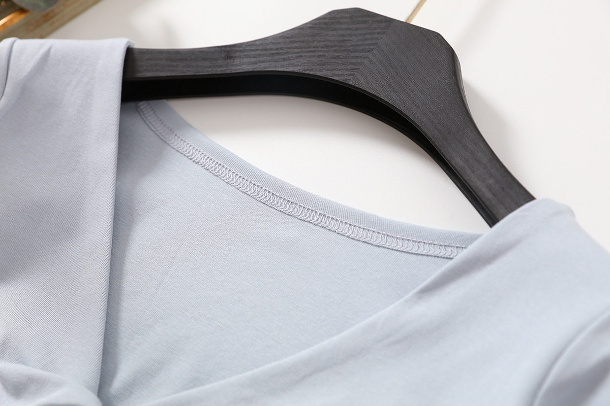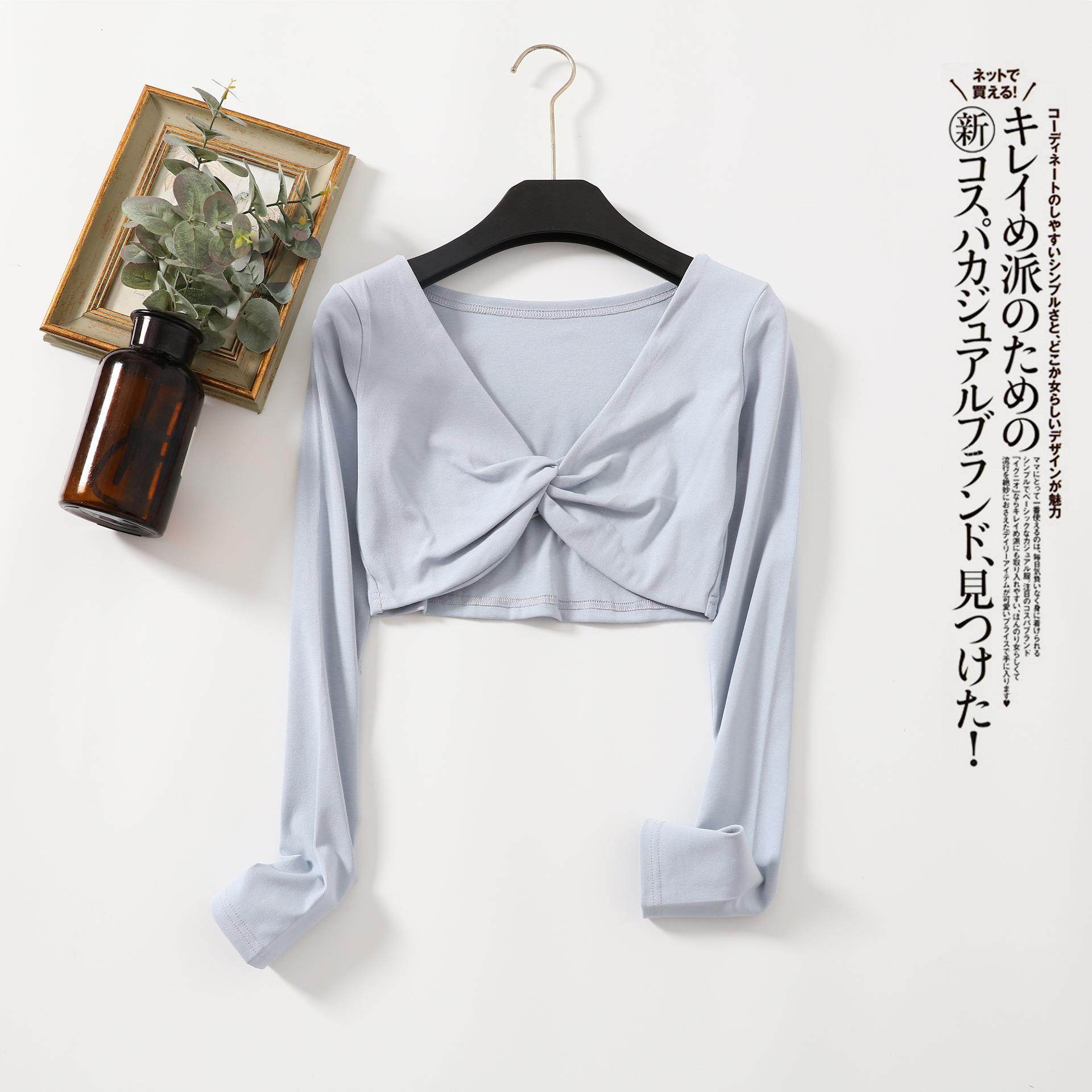罩衫 莫兰迪色交叉上衣女V领显瘦长袖 薄款 T恤防晒衣夏季 扭结打底衫