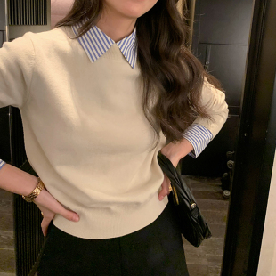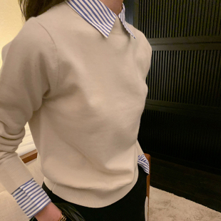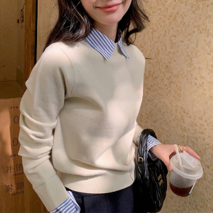 拼接衬衫 假两件百搭上衣套头女装 领针织衫 打底衫 毛衣春季 2026新款