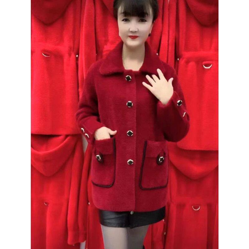 秋冬网红爆款 秋冬女外套中老年高端大衣潮 水貂绒2023年洋气妈妈装