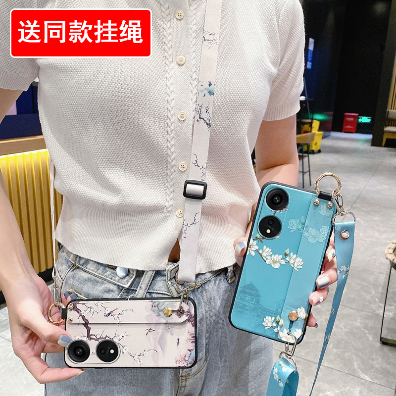 A3手机壳A2x保护套PHQ110斜挎A5Pro背带A58男m女款 防摔硅胶腕带A58X带挂绳活力挂脖5G 中国风适用oppo