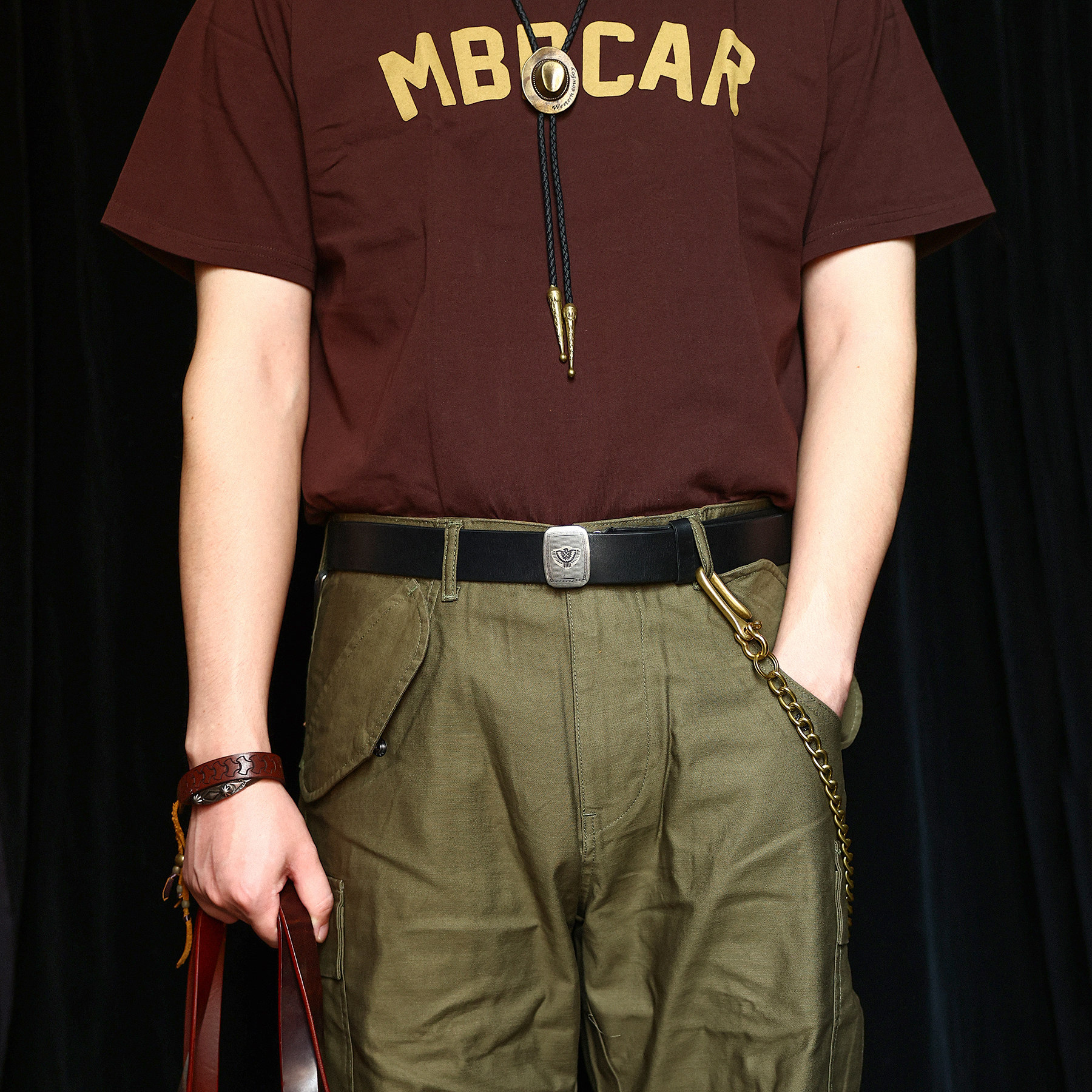 腰带 纯手工复古白铜合页扣皮带男真皮做旧自动扣牛仔裤 HALF WORK