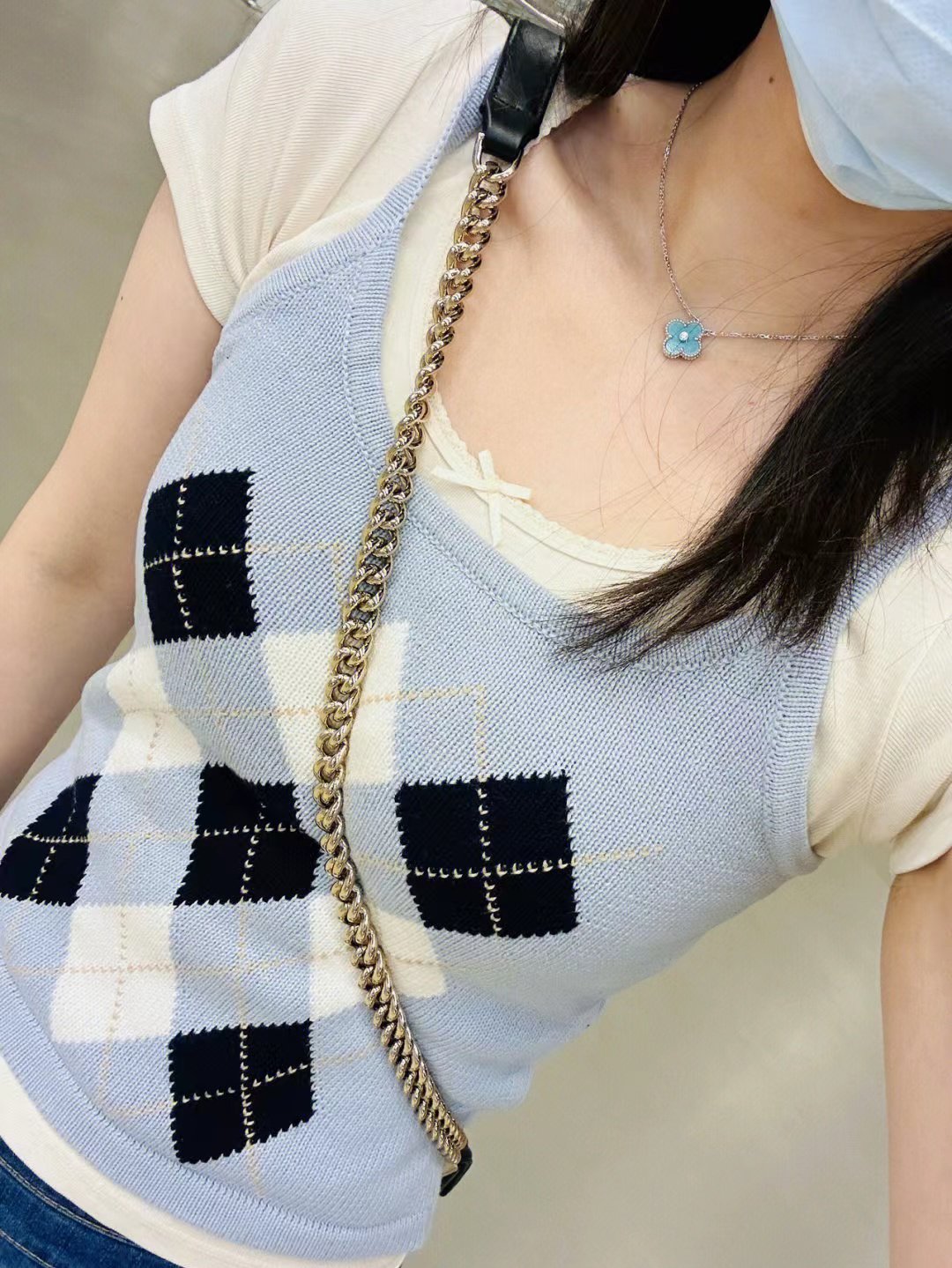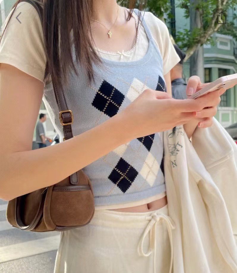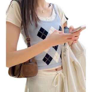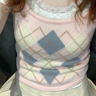 复古学院风百搭菱形格纹bm针织吊带上衣女 美式 Brandy Girl新款