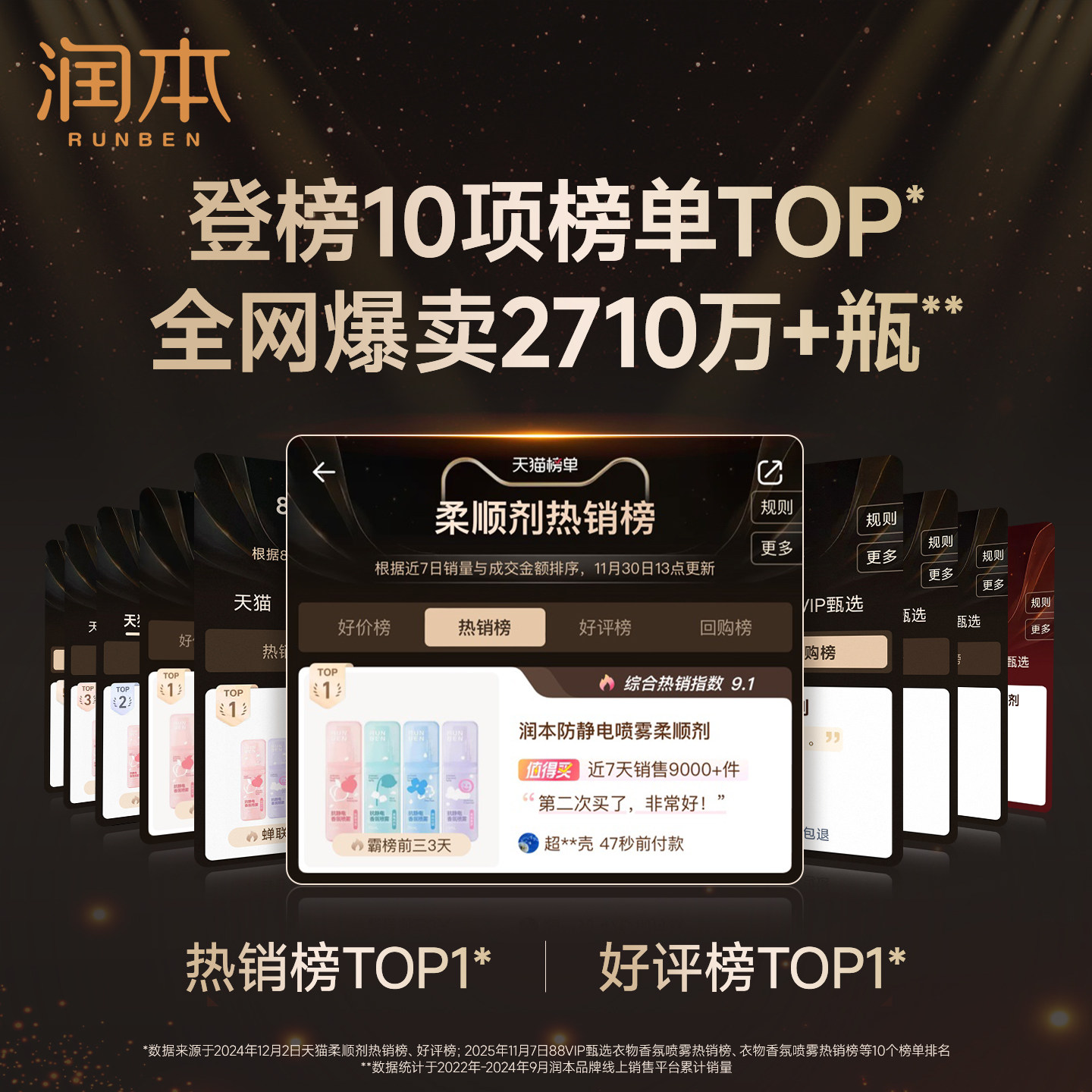 润本防静电喷雾衣服除静电抗皱毛衣毛呢柔顺剂衣物香氛去静电神器