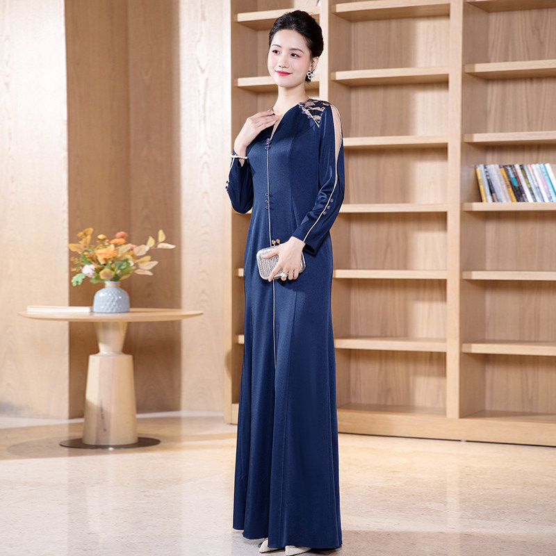 长款 多丽琦高端复古连衣裙轻奢小众晚礼服高级感宴会鱼尾修身 晚装