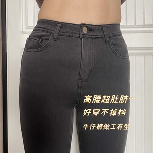 胖mm高腰弹力显瘦梨形身材喇叭裤 加绒大码 女冬季 黑灰色微喇牛仔裤