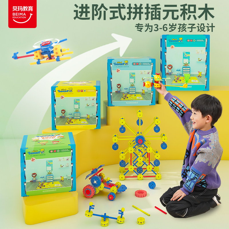 6岁儿童益智玩具 圆积木柜桌齿轮3 万能工匠家庭大套装 立体拼插装