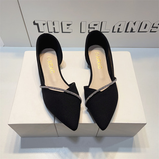 百搭伴娘婚鞋 2025年春秋新款 女细跟法式 高跟鞋 女 尖头水钻浅口单鞋
