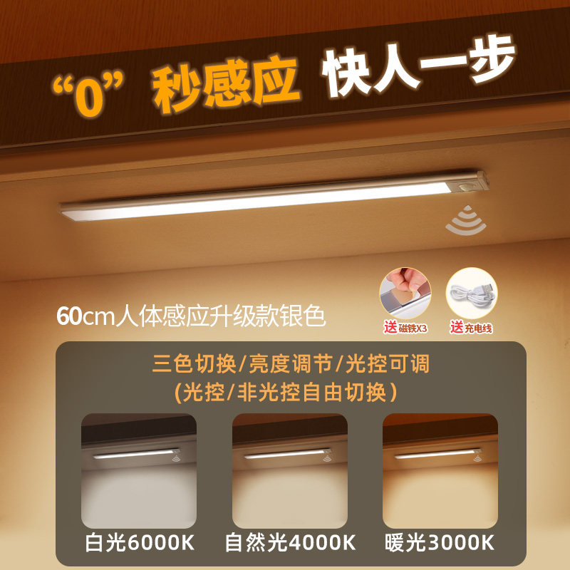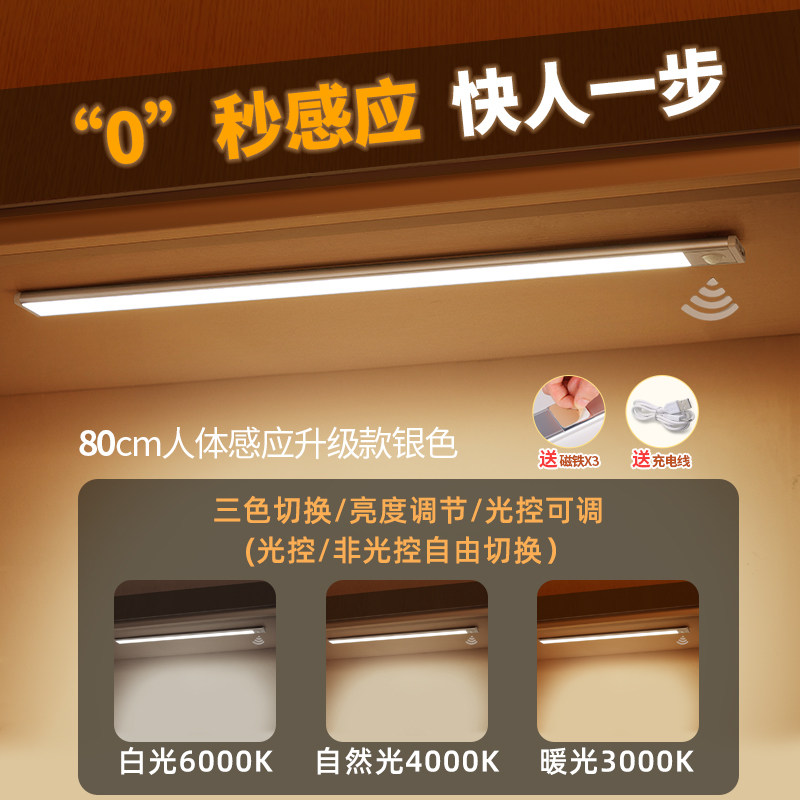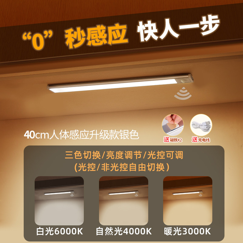 人体感应LED灯带充电式 柜灯条夜间玄关过道展示柜 无线磁吸自粘鞋