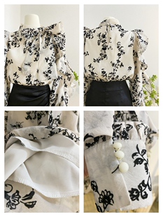 设计感减龄荷叶边小衫 法式 女2025春季 衬衫 上衣 系带蝴蝶结碎花长袖