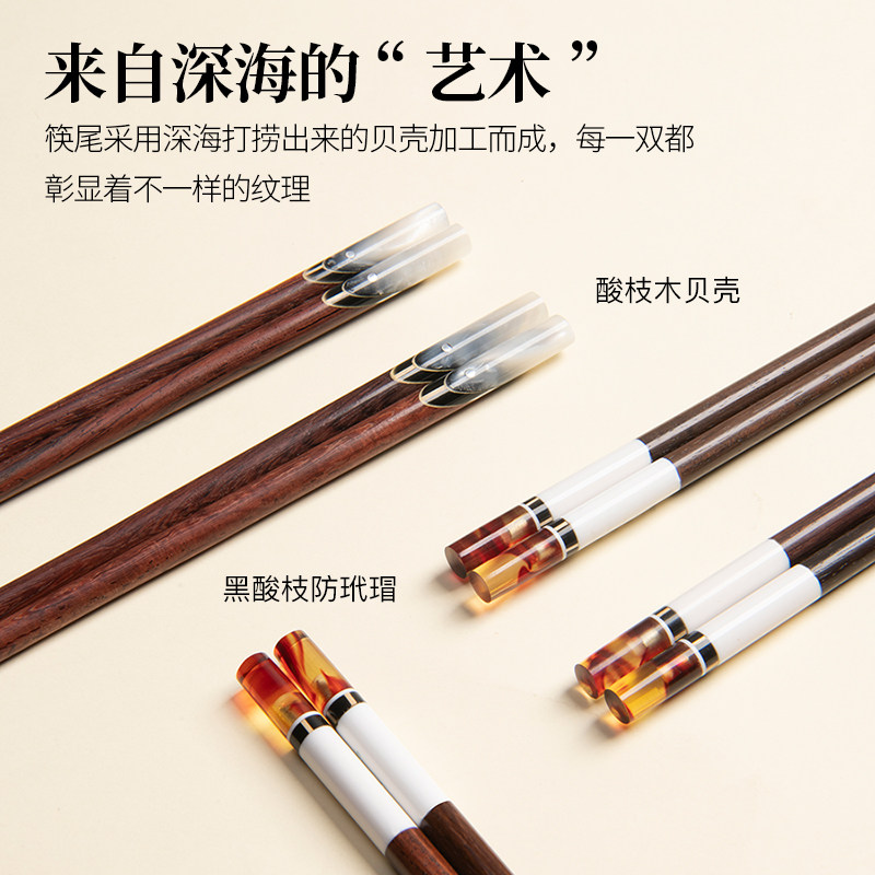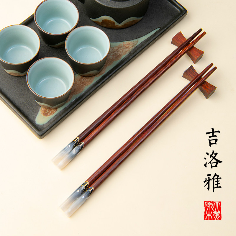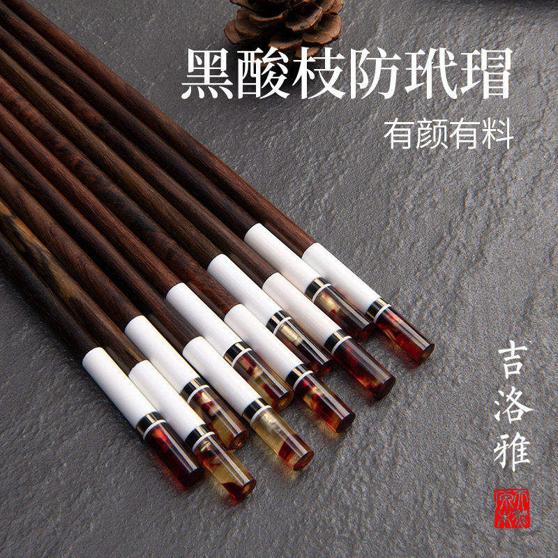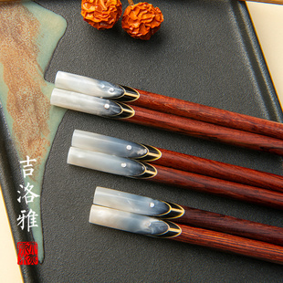 吉洛雅新款 家用高档黑酸枝无漆无蜡防滑防霉防滑贝壳镶嵌精品筷子