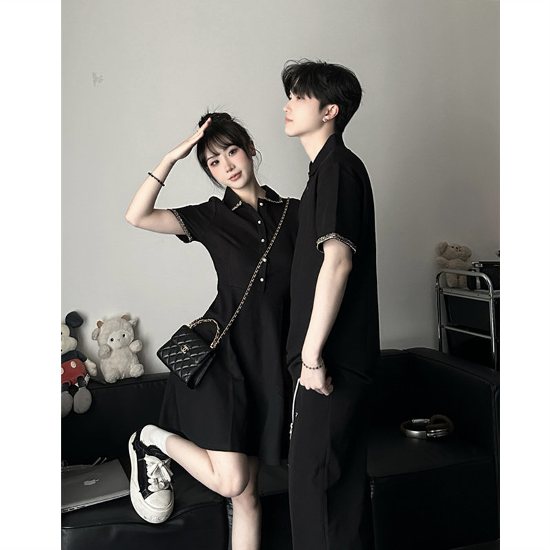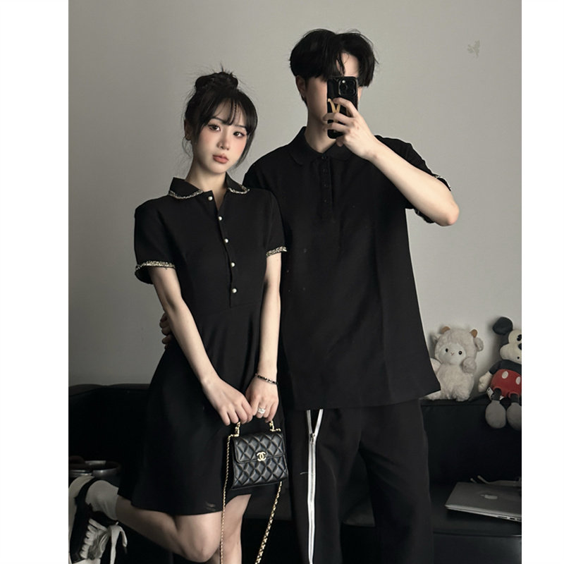 t恤女连衣裙法式 情侣装 polo短袖 高级小众设计感韩版 一裙一衣 夏季