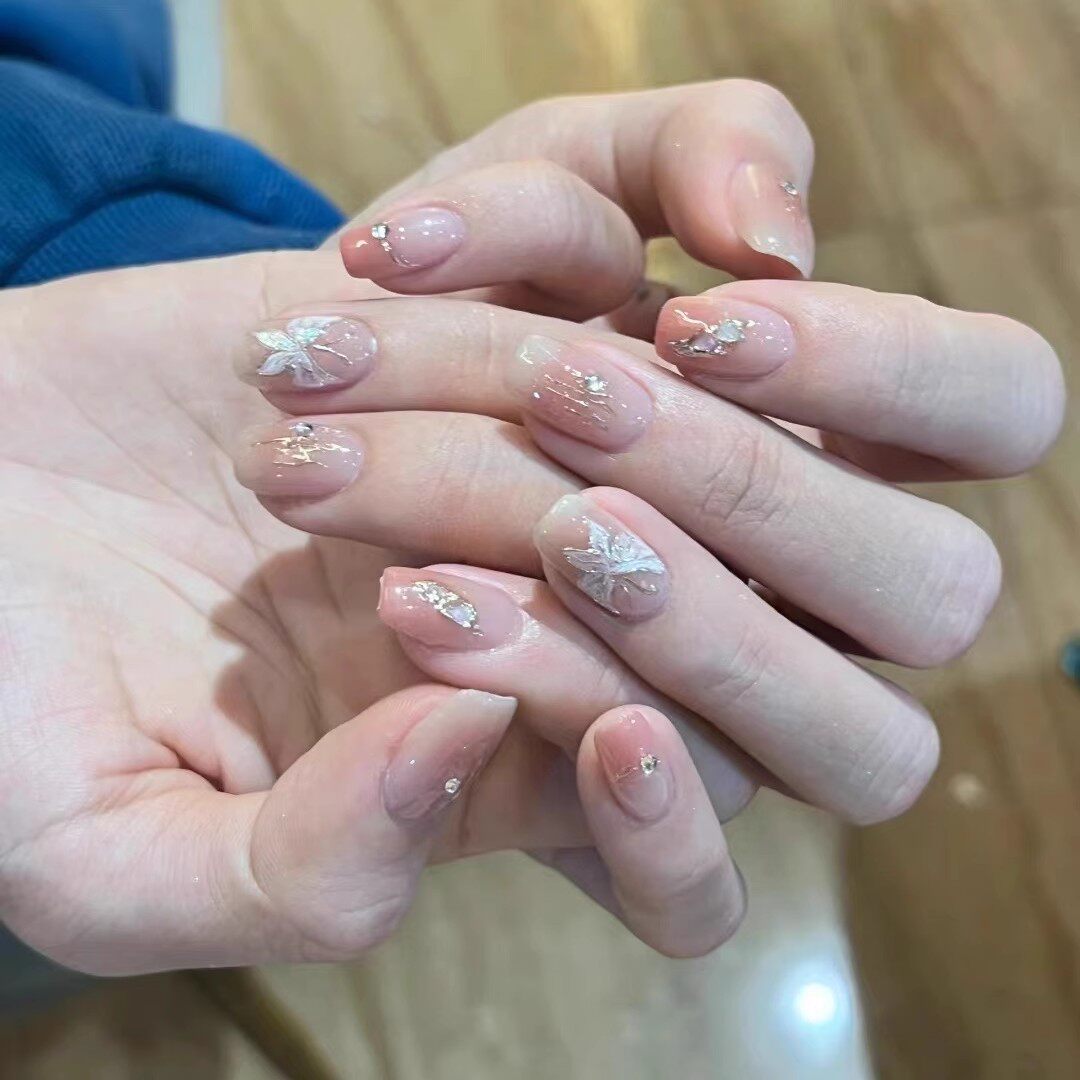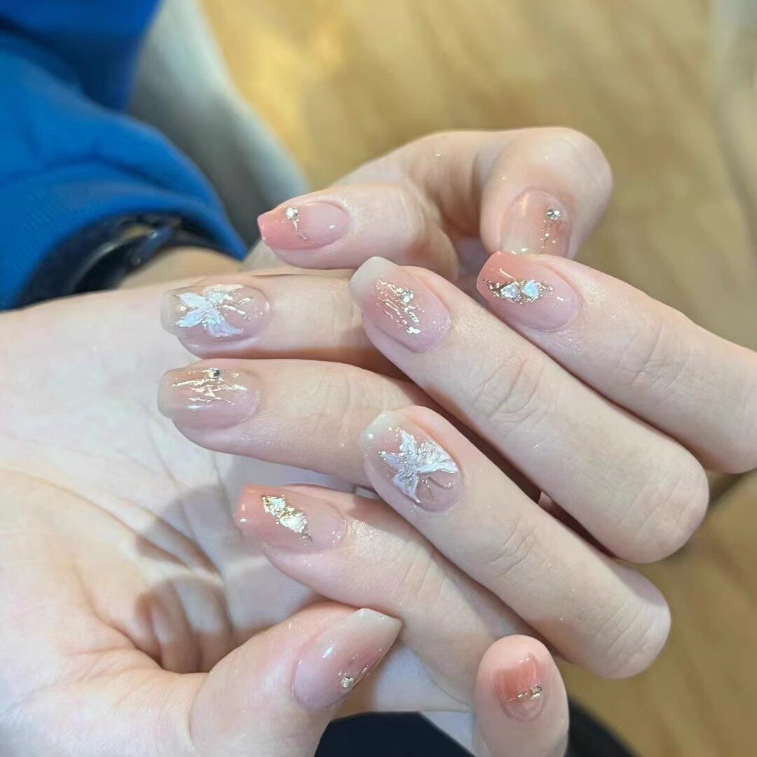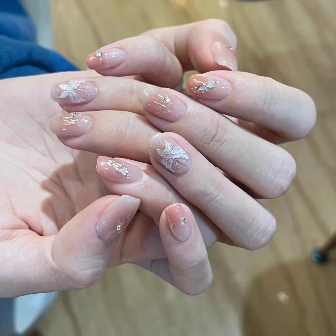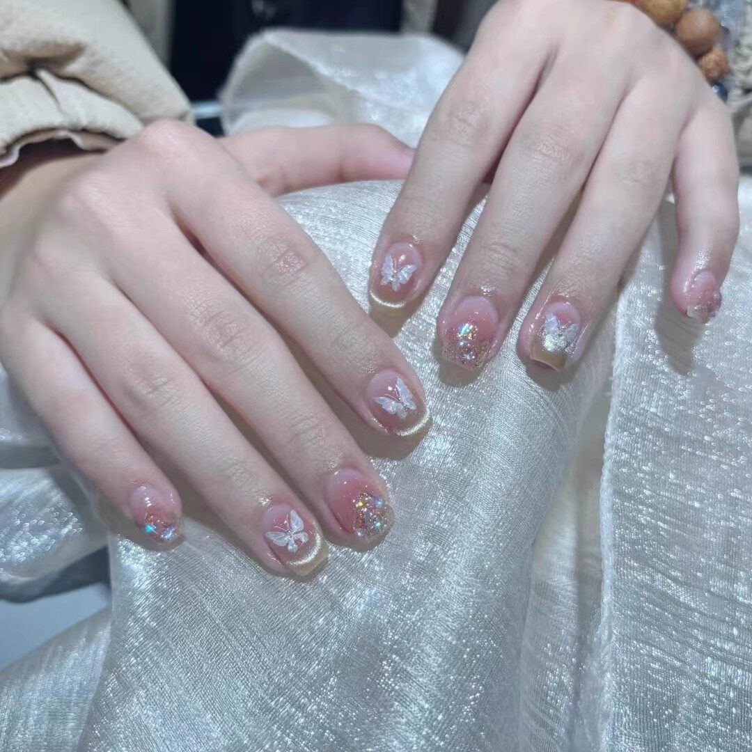 375手工定制假指甲贴片成品显白腮红猫眼蝴蝶新娘孕妇穿戴美甲