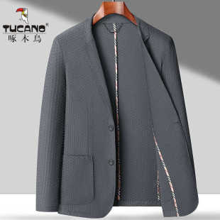 单西外套上衣 休闲防晒衣弹力小西装 啄木鸟春夏冰丝西服男士 轻薄款